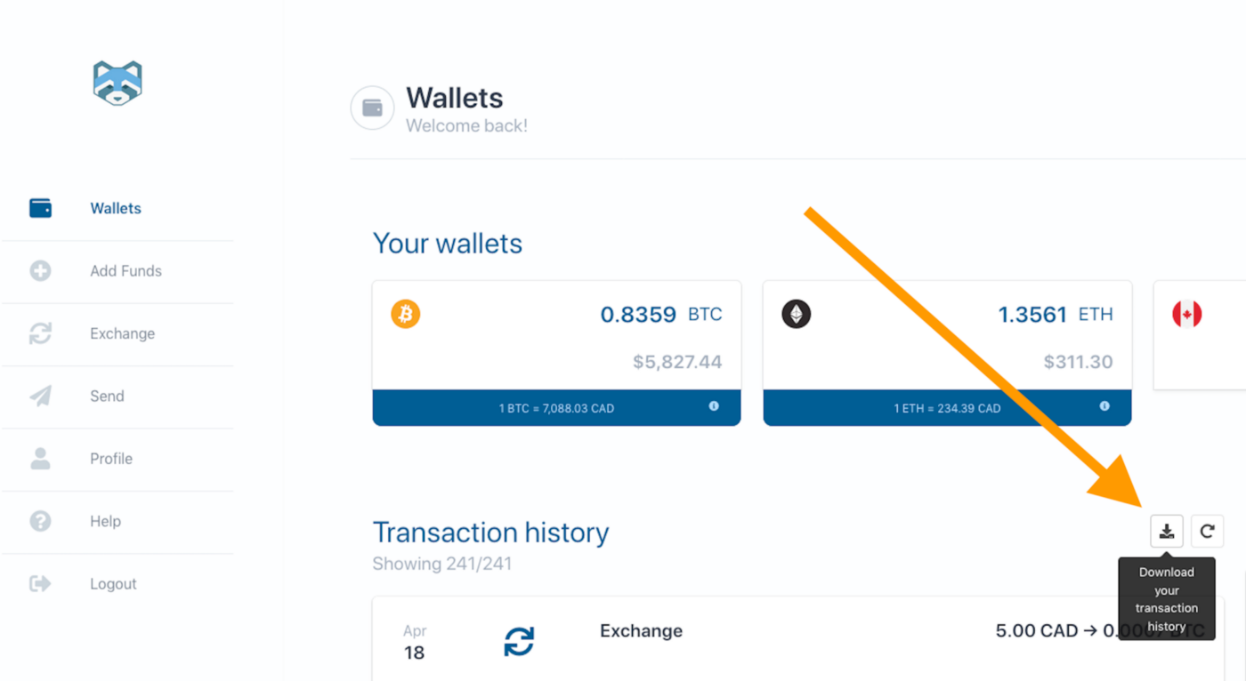 We’ve made available a downloadable CSV of your transaction history on Shakepay. You can request it either on the web (see below) or on mobile via the Settings page.